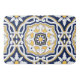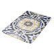 Padrão geométrico marroquino vívido, azul e amarelo, o moorish inspirou um complexo motif decorativo de azulejos. Uma forma excelente de adicionar uma abertura em negrito de cor vívida e padrão de mosaico intrincado.