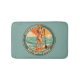 Get on board brings retro California surf shop graphics to life with a red bikini clad beach blonde pin-up. This coastal cutie is enjoying a seaside sunset paddle in front of a glowing orange sky and horizon hugging clouds. Made for beach bums, salty paddleboarders and anyone living on island time. This misty teal bath mat is the perfect way to add ocean energy and sun-soaked vibes to your bathroom decor. | Matching shower curtain available in store. This listing includes the bathmat only.