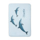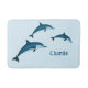 Um doce tapete de banho azul com três golfinhos lúdicos. Você pode personalizá-lo com seu nome.