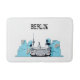 Bath Mat de Grafite Skyline da cidade de Berlim. Um legal design com a linha do horizonte de Berlim, a Capital Alemã, com um mural de arte de rua de um carro alemão oriental quebrando o muro.