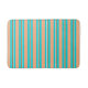 Bath mat em um padrão amplo de listras em laranja e aqua de coral, acentuado com listras estreitas de branco e marrom de chocolate