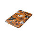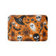Fundo cor de laranja com fantasmas assustadores, crânios, morcegos e bombas
