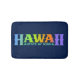 tapete de banho no Havaí. Colorido tapete de design Hawaii. As belas ilhas havaianas, não apenas um Estado - mas também um estado mental. O banheiro do Havaí em lindas e brilhantes cores tropicais sobre fundo azul roxo escuro e profundo - com o slogan do "Estado de Mente" cercado por flores de hibisco. Tema tropical único acessório de banheiro no Havaí.