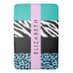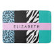 Padrão elegante, na moda e sofisticado de leopardo e zebra em cor azul. Presente moderno e moderno, perfeito para o amante da impressão animal em sua vida. Personalize adicionando o seu nome, apelido, monograma ou iniciais.