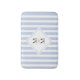 Bath Mat com um padrão listrado azul claro e branco com suas iniciais monográficas em cinzas escuras sobre uma forma de diamante branco. Todas as cores são personalizáveis.