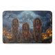 Libere o espírito assustador com esta design sombria do Dia das Bruxas apresentando um bando de cachorros sob um céu escuro e iluminado, cercado por morcegos voadores e abóboras brilhantes. Perfeito para aqueles que amam um toque de diversão terrível com seus amigos peludos!