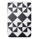 Um padrão geométrico ousado e de alto contraste que apresenta triângulos brancos e pretos impressionantes que criam um efeito visual dinâmico e moderno. É simétrico e afiado, dando uma sensação limpa e contemporânea, enquanto as formas triangulares formam uma composição ocular, quase em forma de mandíbula. Este design minimalista é perfeito para adicionar um toque de elegância moderna ao decoro doméstico, à moda ou aos acessórios, fazer qualquer produto sobressai com o eterno preto-e-branco.