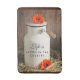 Um banho com o texto" A vida é melhor no país. Projetado com um tema rústico. Fotografia de uma jarra de leite branca e um casal de flores laranja colocadas em volta da lata de leite. Sentado num celeiro com feno. Painéis de madeira no fundo. Perfeito para a cabana.