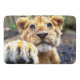 Este tapete de banho tem um leão bonito nele.