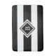 Combine o seu banheiro com este tapete de banho de espuma de memória, monograma, de listras brancas e pretas. Ele foi projetado com faixas verticais e seu monograma no centro, em letras brancas mínimas. Clique na opção personalizar modelo e insira a versão inicial para exibir seu produto personalizado.
