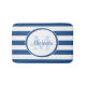 Um rugby azul e branco legal listra o tapete de banho. Personalize este teste padrão gráfico adicionando sua inicial conhecida e monogrammed. Este design sassy do monograma é parte da coleção clássica da cor do verão da decoração do banheiro das listras azuis.