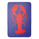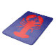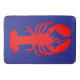 Matte de banho inspirado náutico com uma lavagante vermelha contra fundo azul profundo.