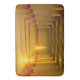 Um pôr do sol macio vai tudo geométrico. Um pôr do sol rippling em cinzas sobre as Ilhas Suecas, recebe uma extensão geométrica em laranja, uma espiral quadrada irradia da imagem inicial.