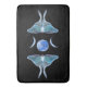 Luna Moth no estilo aquarela debaixo de uma lua azul e duas luas em crescente sobre um céu noturno negro.