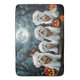 Libere o espírito assustador com esta design sombria do Dia das Bruxas apresentando um bando de cachorros sob um céu escuro e iluminado, cercado por morcegos voadores e abóboras brilhantes. Perfeito para aqueles que amam um toque de diversão terrível com seus amigos peludos!