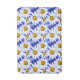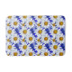 Bath mat em um padrão de aquarela de margaridas brancas com centros ouro amarelos, sobre fundo em tons de azul denim