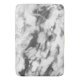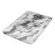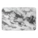 Um teste padrão de mármore preto, cinzento e branco bonito cobre este tapete de banho que traz um olhar clássico antiquado ao banheiro.