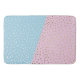 Mala de banho com pontos brancos e dourados sobre fundo azul e rosa.