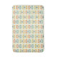 Um padrão inspirado na era atômica com um sputnik starbursts dentro um padrão geométrico simples em chartreuse, laranja, amarelo e azul.