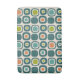 A retro-inspired grid of rounded squares, each cell featuring concentric shapes in teal, orange, chartreuse green, turquoise and beige. The outer dark teal squares anchor the composition, while the varied inner shapes add rhythmic contrast and visual warmth. Set against a soft beige background, the pattern evokes mid-century modern design with its bold colors, geometric repetition, and nostalgic charm—perfect for textiles, wall art, or vintage-themed decor.
