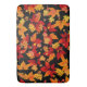Autumn Midnight, mostra um padrão vibrante de folhas do outono em um fundo preto. As folhas são uma mistura de tons vermelhos, laranja, amarelo e dourados, representando uma variedade de espécies como carvalho, carvalho e castanheiro. "o contraste entre as cores vívidas das folhas e o fundo escuro cria um efeito marcante e dramático, enfatizando os tons quentes e o detalhe intrincado da folhagem. folhas menores, bolotas e galhos são espalhados ao longo, acrescentando profundidade e textura ao padrão. A design tem um sentimento enérgico e festivo de uma noite viva de outono.