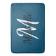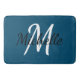 Bath mat com fundo azul profundo e primeiro nome e monograma personalizado branco.