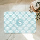 Introduza uma sensação de ar fresco no seu banheiro com este elegante padrão de celas brancas e azuis. Este monitor sofisticado apresenta conchas brancas contra um fundo azul calmante. Adicione sua inicial ao círculo central para obter um toque exclusivo. Este produto de pelúcia e absorvente é visualmente atraente e proporciona uma superfície confortável e segura. Melhore sua casa com este sotaque inspirado no oceano, na moda.