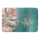 Tapete De Banheiro Monograma de Folha Verde de Palma Dourada Elegante
