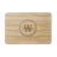 Um padrão de grãos de madeira sujo e de cor clara dá a esta tampa de vidro deste conselho de corte de queijo a ilusão de ser feito de vários tipos de madeira. Personalize com seu monograma.