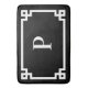 Borda retangular geométrica do estilo chave grego decorativo num tapete preto de 24" x 36" com um monograma serif moderno. Personalize este design editando o branco ou o preto com sua opção de cor favorita. Altere o estilo, o tamanho ou a cor da fonte, conforme necessário. Combine esta trendy shade com a sua moderna decoração minimalista do banheiro. Esta imagem gráfica funcionará para os três tamanhos de tapete de banho: grandes 24" x 36", médio 20" x 30" e pequenos 16" x 24". Envie uma solicitação se precisar de outro presente aqui no mercado com uma área de impressão diferente.