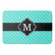 Teste padrão diagonal azul das listras do aqua moderno com design preto à moda do quadro da bandeira no meio para sua inicial personalizada do monograma.