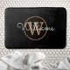 Tapete de banho clássico preto e dourado com monograma. Você pode personalizar o nome, monograma e personalizar a fonte e as cores para criar seu próprio design exclusivo. Criado por Thisisnotme©
