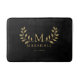 Este tapete de banho com monograma floral elegante, moderno, preto e dourado com o nome da família é o acessório perfeito para o banheiro. Projetado por Thisisnotme©