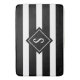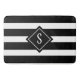 A Matriz de Banho Mínima Mineral Moderna é desenhada com faixas brancas horizontais e monograma em forma de diamante no centro do fundo preto. A família inicial está no centro em letras grandes brancas. CLIQUE EM PERSONALIZAR OPÇÃO MODELO E ENTRE NO MONOGRAMA