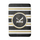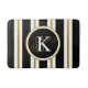 Tapete De Banheiro Monograma Personalizado de Stripes Negras e Dourad