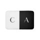 O tapete de banho monogrammed confortável e à moda é branco em um meio e em preto no outro com iniciais preto e branco.