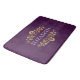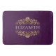 Um elegante tapete roxo e dourado floresce um tapete de monograma. Adicione seu nome entre o floral dourado floral na frente. Projetado para você pelo Blackberry Boulevard.