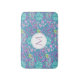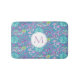 Um Bathmat colorido com Belíssima Turquesa e Violet Floral Pattern em um fundo turquesa, e um Monograma que você pode mudar a partir do menu personalizar. Arte original pintada manualmente pela LallaDesigns.