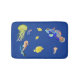 Este lindo tapete de banho colorido vai iluminar o seu banheiro com um toque de exótico. Cavalo-marinho, água-viva e peixes nadando em um mar muito azul. Todas as imagens são personalizáveis e a cor de fundo pode ser alterada.