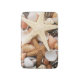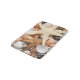 Fotografia de muitas conchas e amiláceos impressa nos bordos da esteira.