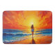 Tapete De Banheiro Mulher caminhando na praia do oceano quente pôr do
