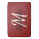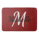 Bath mat com fundo vermelho escuro e um monograma moderno e minimalista, primeiro nome e primeiro nome.