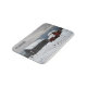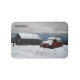 Uma cena de vitrine, rural, com um caminhão vermelho, velho e coberto de neve, sentado perto de uma cabine de ramshackle perto de Sandpoint, ID. O texto personalizável que lê "IDAHO" também é exibido.