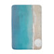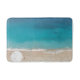 Um tapete de banho de praia, com água tropical azul oceânica e um solteiro, um dólar de areia branca na praia. Um tapete de banheiro no estilo espuma com um tema costeiro.