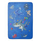 Maravilhosa cena do oceano de desenho animado com tubarões, peixes, polvo e caranguejo. Ilustração ©2021 Michael C. Paul https://mikepaulart.com
