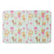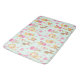 Um tapete de banho com um padrão caprichoso que inclui uma coleção de brinquedos e animais deliciosos para crianças.