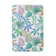 O padrão verde e azul das folhas tropicais esmagadas sobre fundo branco.