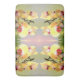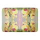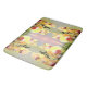 O belo padrão neste Bath Mat foi feito a partir de uma fotografia original do HomeWare de orquídeas amarelas à luz do sol da tarde. As flores das orquídeas têm pétalas amarelas claras com centros vermelhos a roxos. Um caule verde-escuro sopra pelo centro das flores. O fundo pastel é feito de tons de mistura rosa em verde-claro. Algumas folhas verdes claras de uma planta única podem ser vistas em um canto. Quando a foto é combinada para fazer o padrão, o design floral torna-se um jardim de orquídeas com o brilho rosa do sol da tarde no centro.