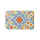 Este tapete de banho elegantemente arranjado mostra um clássico design de flores botânicas estilo Talavera mediterrânico, apresentando um padrão vibrante de flores amarelas, laranja, vermelhas, verdes e azuis brilhantes e folhas num fundo branco nítido. Ele está disponível em uma variedade de produtos modernos de decoração, como cobertores de velo, lâmpadas e camas.