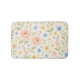 Este elegante tapete de banho ou chá apresenta um charmoso design francês chique contemporâneo. Ele apresenta um padrão floral botânico com rosas rosa-pintas escamosas, azul claro, margaridas amarelas ensolaradas e folhas verdes de sábio lindamente arrumadas sobre um fundo de marfim. Esta escolha original e na moda é perfeita para melhorar a decoração do seu banheiro.
